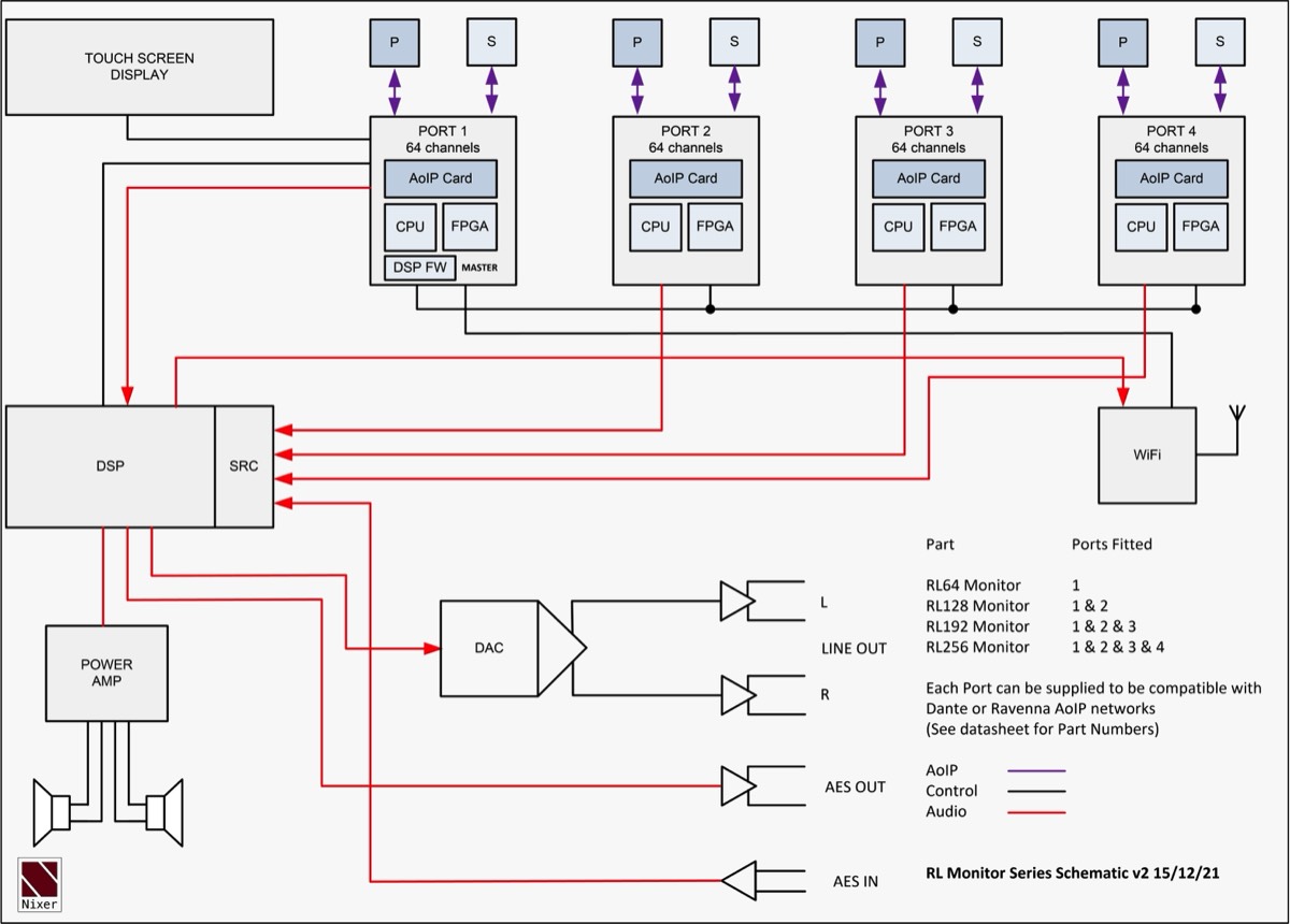 4 models are available the RL64, RL128, RL192 and RL256 and each unit can be configured at time of purchase to be Dante or Ravenna