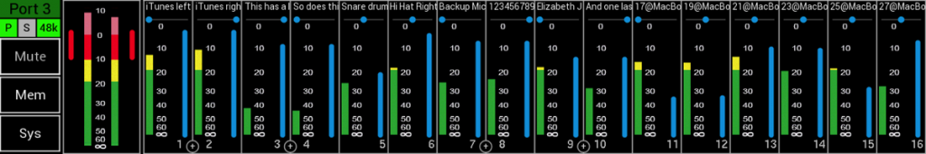 RL Series units allows two modes of operation a mixing mode which can mix up to 256 channels at 48kHz (128 channels at 96kHz) plus microphone input (via headphone connector) and AES input to create a 259 into 2 mixer. Alternatively, it can be set into a simple Listen mode where touching a channel instantly routes to the LR output and cancels any previous selection.